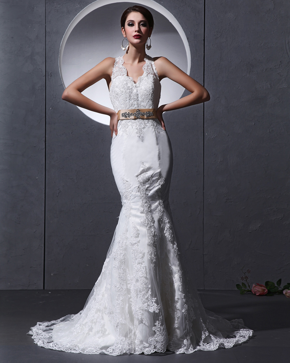 | Lo más destacado5 | Revestimiento de encaje de cola de pez de lujo, flores tridimensionales, refinamiento estético |